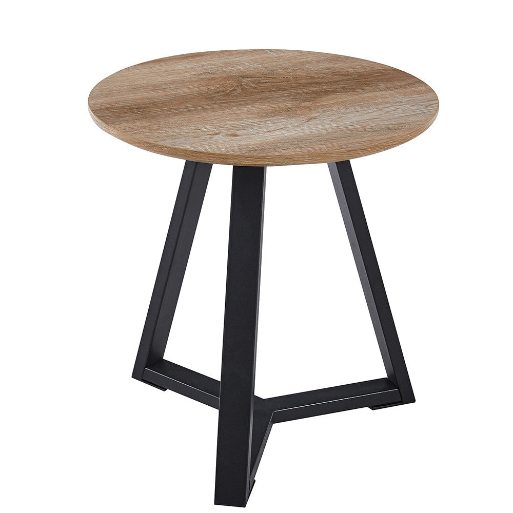 The Arden is a compact round side table with a warm oak-look top and a sturdy black metal base. It slides neatly next to a sofa or armchair and brings a calm, modern feel to your space. Ideal for coffee, a book, or a small vase—without adding visual clutter.
